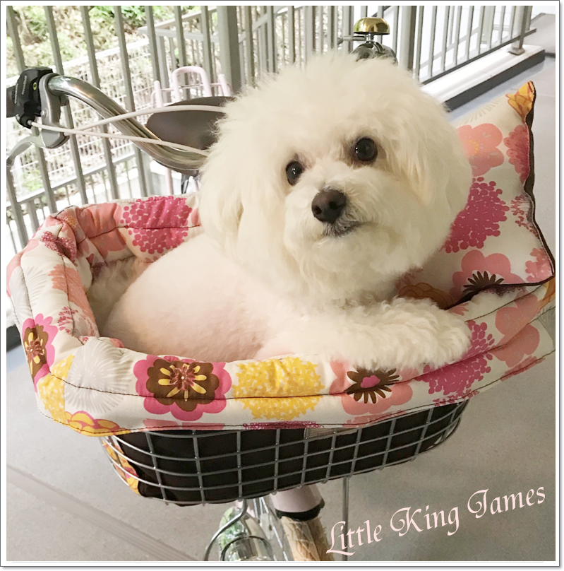 あいにくの雨でまだサイクリングに出かけられてはおりませんが、モコナも居心地良さそうに自転車カゴに収まっています。
