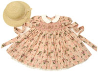 胸のスモックも生地柄と同じバラの刺繍がしてあります。