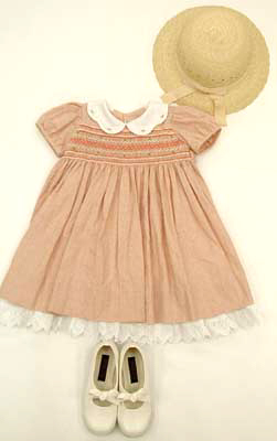 先染のCottonの手触りが気持ちよくてたまらないサーモンピンクのスモックドレス!