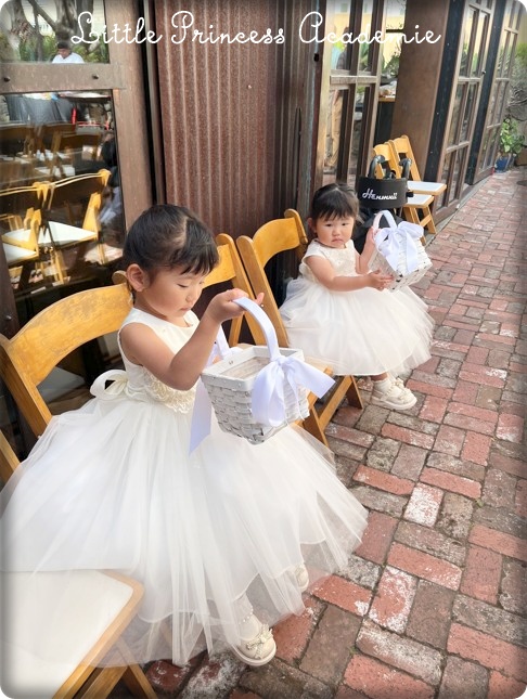 姉妹お揃いのドレスでフラワーガールの大役を見事に果たしました♪