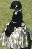 Topが黒のベルベットでスカートがゴールドと黒のチェックのフランス製のワンピース。