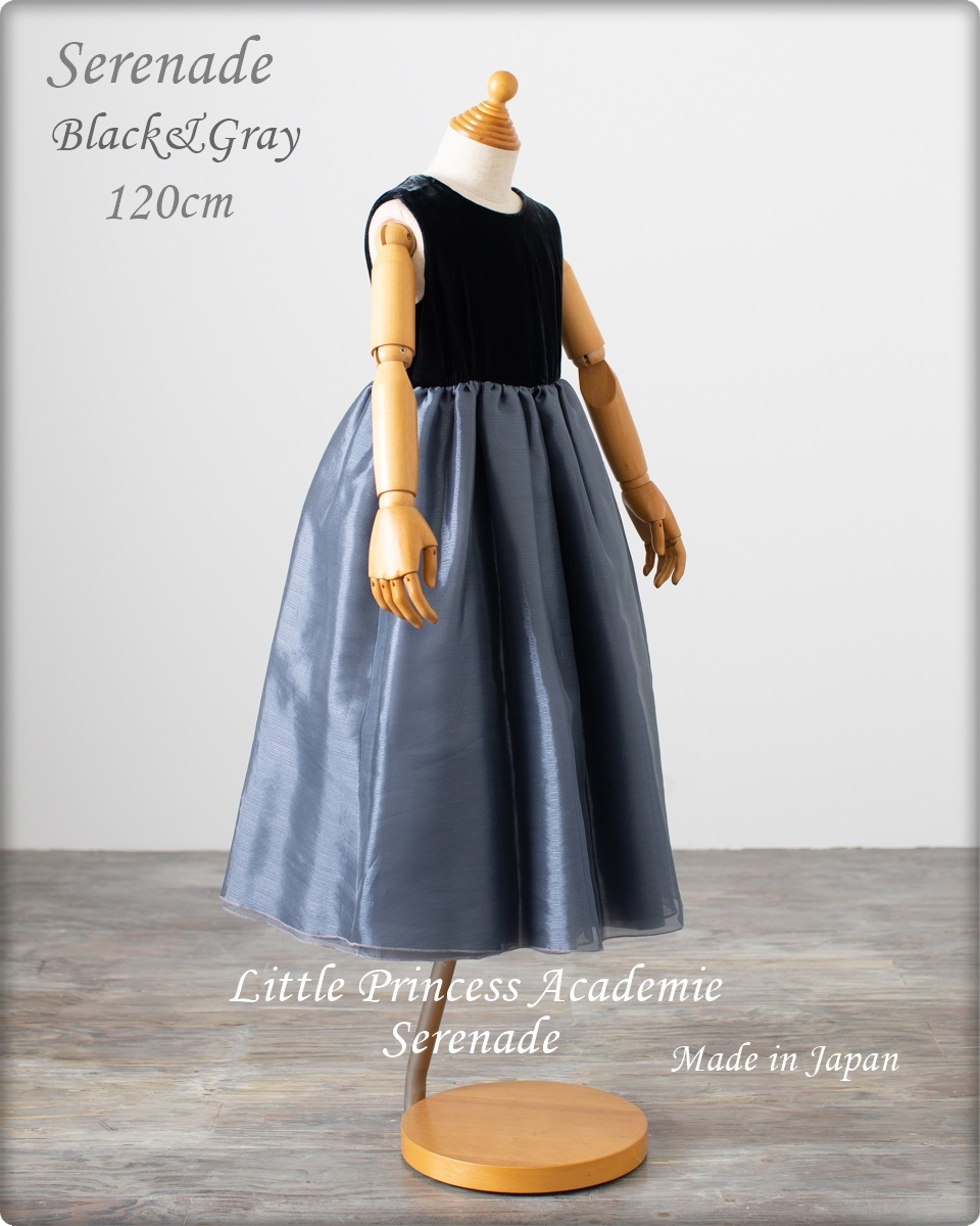 ダークグレーの高級ベルベットとグレーのオーガンジーのの夜会服。